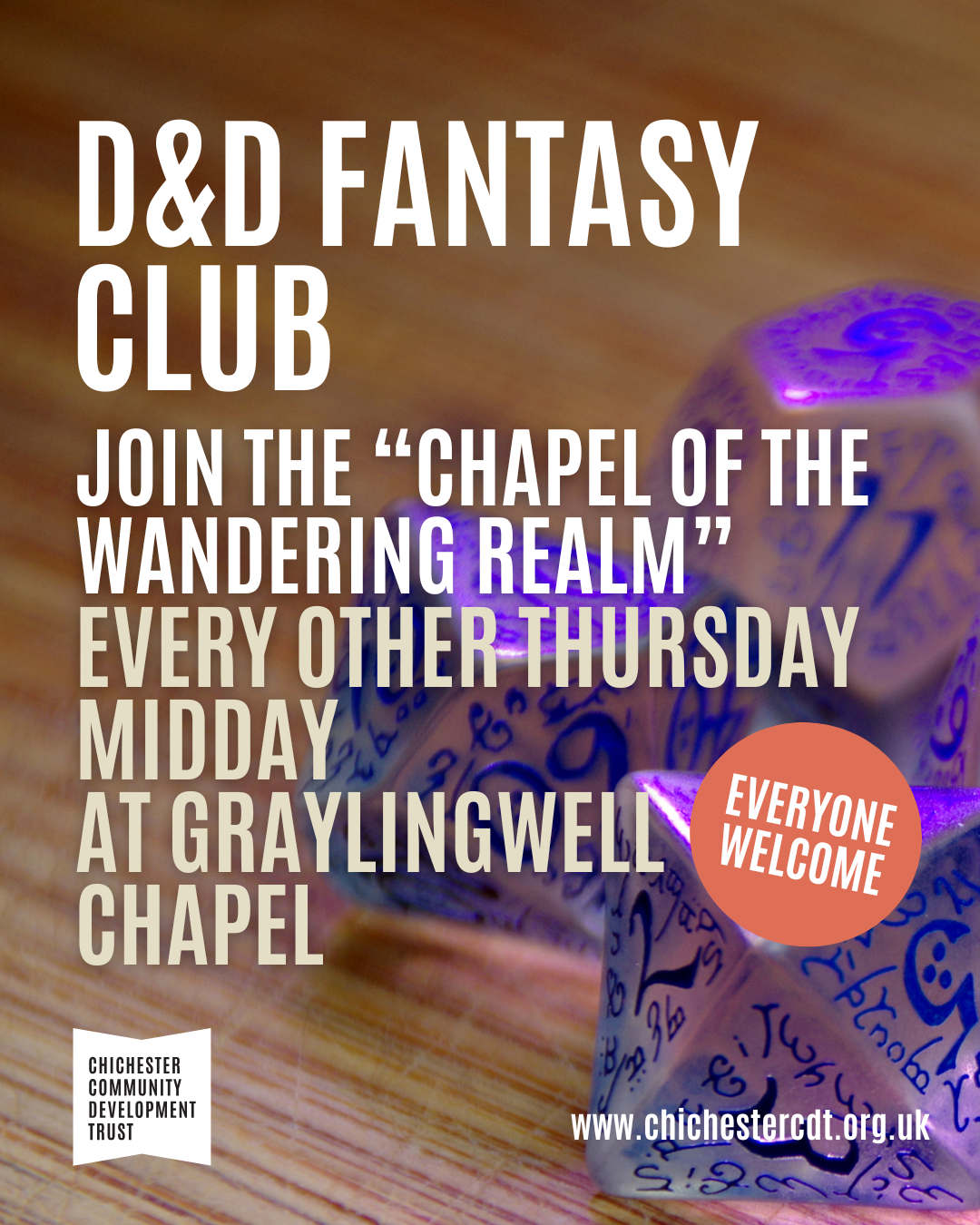 No booking required, please email community@chichestercdt.org.uk with any questions.